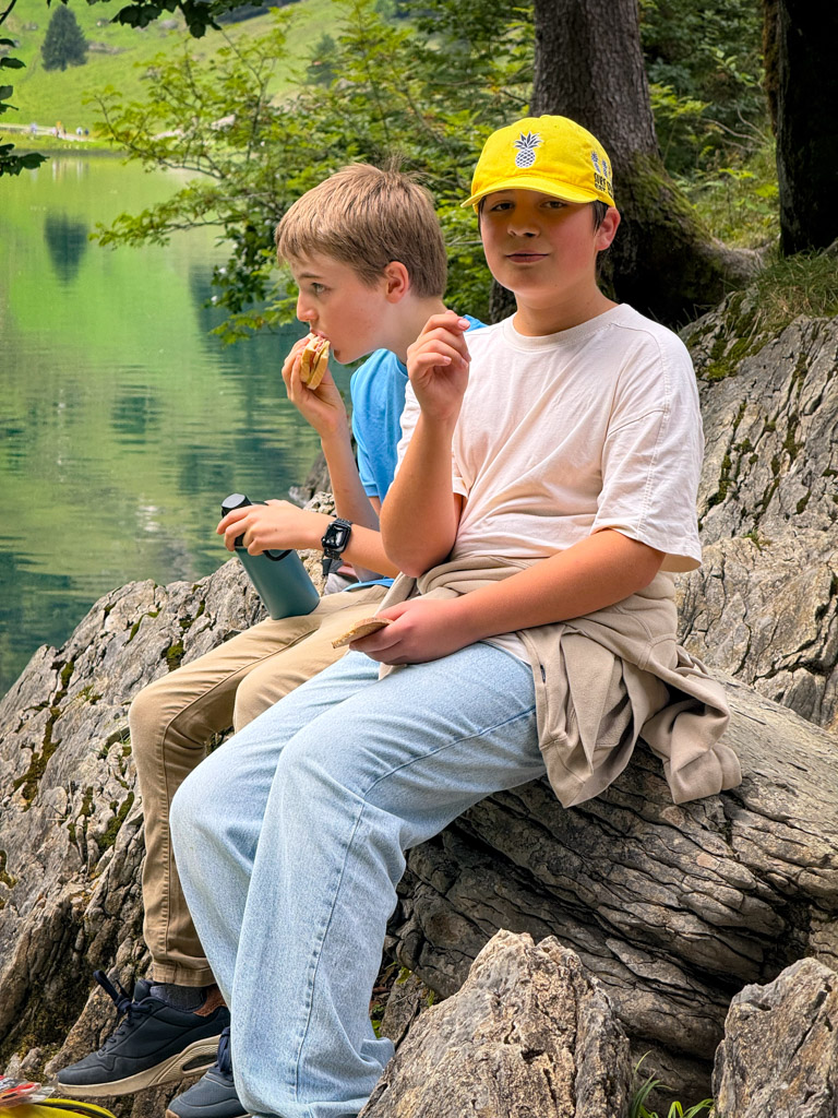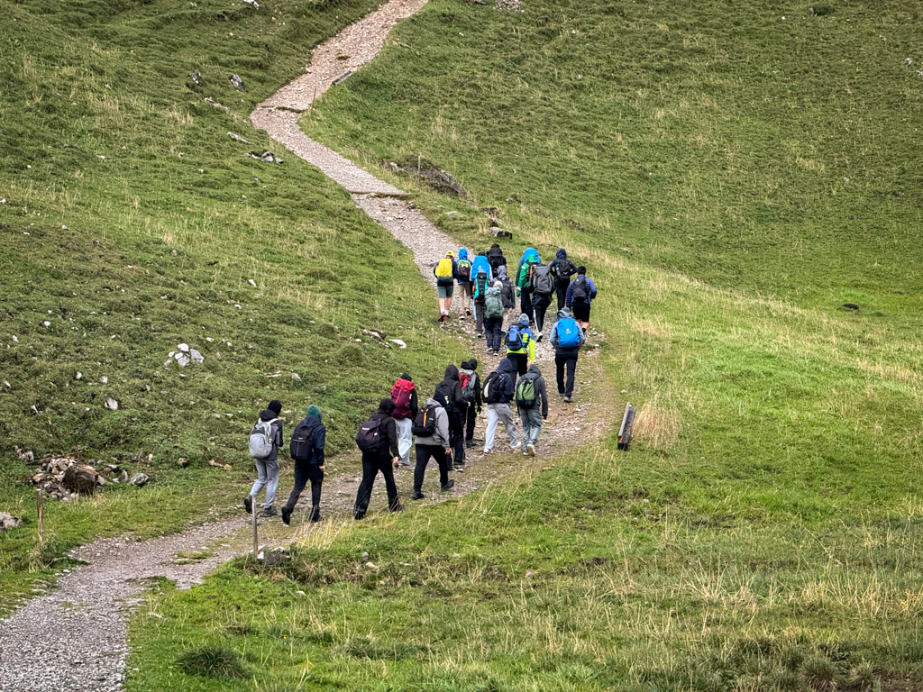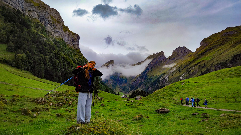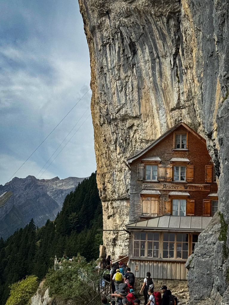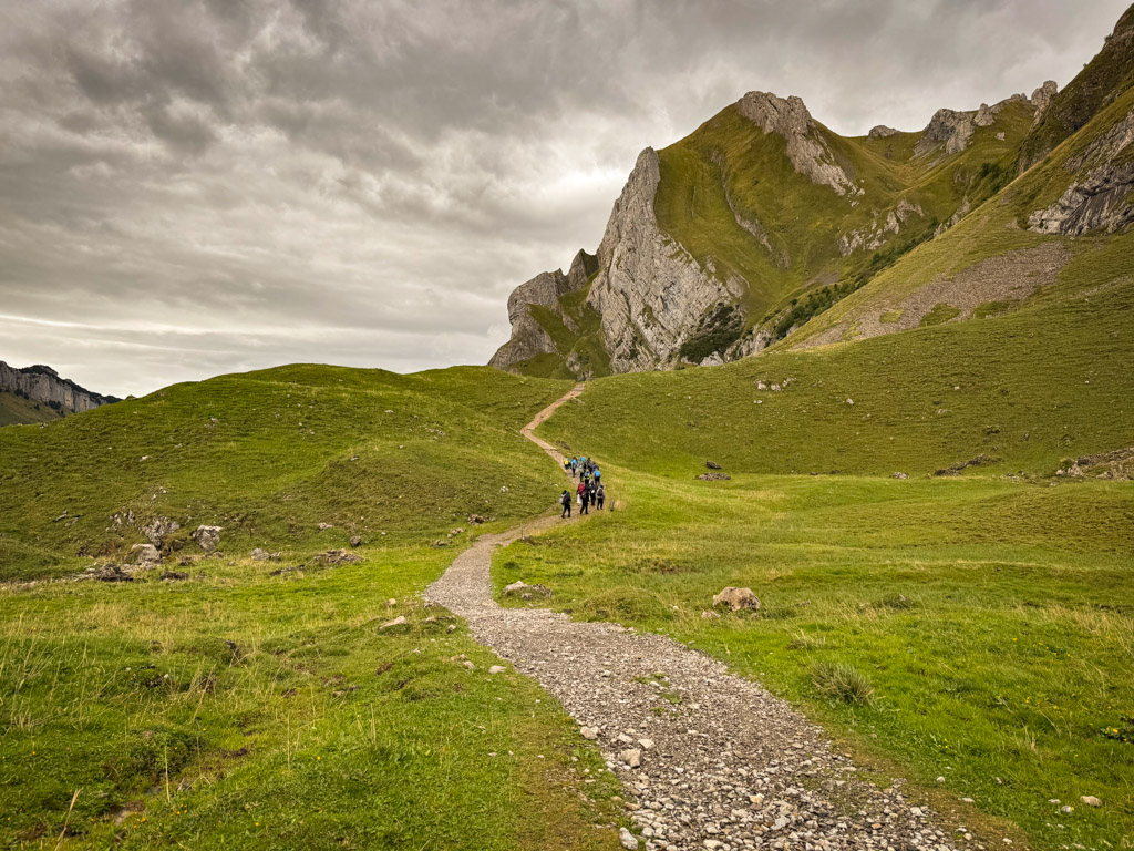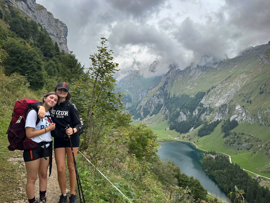 Alle trafen sich am 8. September am HB in Zürich und nach 2h Fahrt kamen wir in Wasserauen an. Mit der Gondel fuhren wir auf die Ebenalp und von dort wanderten wir durch eine Höhle, am Äscher vorbei runter zum Seealpsee. Man musste gut aufpassen, dass man nicht ausrutscht. Bei der Mittagspause am See haben sich ein paar SuS ins kalte Wasser gewagt. Mit einer Seilschaukel konnte man in den See schwingen, das war schön! Den meisten war es aber zu kalt. Weiter gings bergauf zur Meglisalp, wo wir unterwegs eine abgestürzte Gämse gesehen haben, die leider gestorben ist.