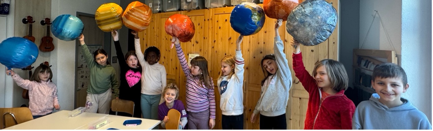 Aktuell beschäftigen sich die Schülerinnen und Schüler im Fach NMG mit dem spannenden Thema Weltall. Sie lernen die Planeten, Sterne und weitere Himmelskörper kennen und entdecken faszinierende Zusammenhänge rund um unser Sonnensystem.